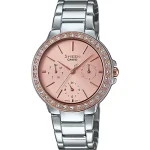 ساعت کاسیو مدل SHE-3069SG-4AUDF از سری محبوب SHEEN انتخابی شیک و حرفهای برای خانمهایی است که به دنبال خرید ساعت SHEEN اورجینال با طراحی منحصربهفرد و کیفیت بالا هستند. این مدل با بند و قاب استیل دو رنگ نقرهای و رزگلد و صفحه صورتی ملایم، ترکیب زیبایی از ظرافت و استحکام را ارائه میدهد. طراحی آنالوگ با سه موتور مستقل (نمایشگر تاریخ، روز هفته و ۲۴ ساعته) باعث میشود این ساعت علاوه بر ظاهر چشمگیر،کارایی فوقالعادهای داشته باشد. شیشه معدنی مقاوم در برابر خش، مقاومت در برابر آب تا عمق ۵۰ متر و استفاده از متریال باکیفیت، این مدل را به گزینه برتر برای خرید ساعت مچی شین زنانه یا خرید ساعت های SHEEN تبدیل میکند.