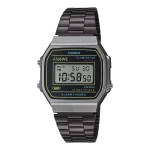 ساعت دیجیتال کلاسیک Casio A168 یکی از محبوبترین و نمادینترین مدلهای کاسیو با طراحی رترو و نوستالژیک است. این ساعت با بدنه استیل نقرهای و صفحه نمایش LCD همراه با نورپردازی پسزمینه، ترکیبی از سبک قدیمی و کاربردی مدرن را ارائه میدهد.